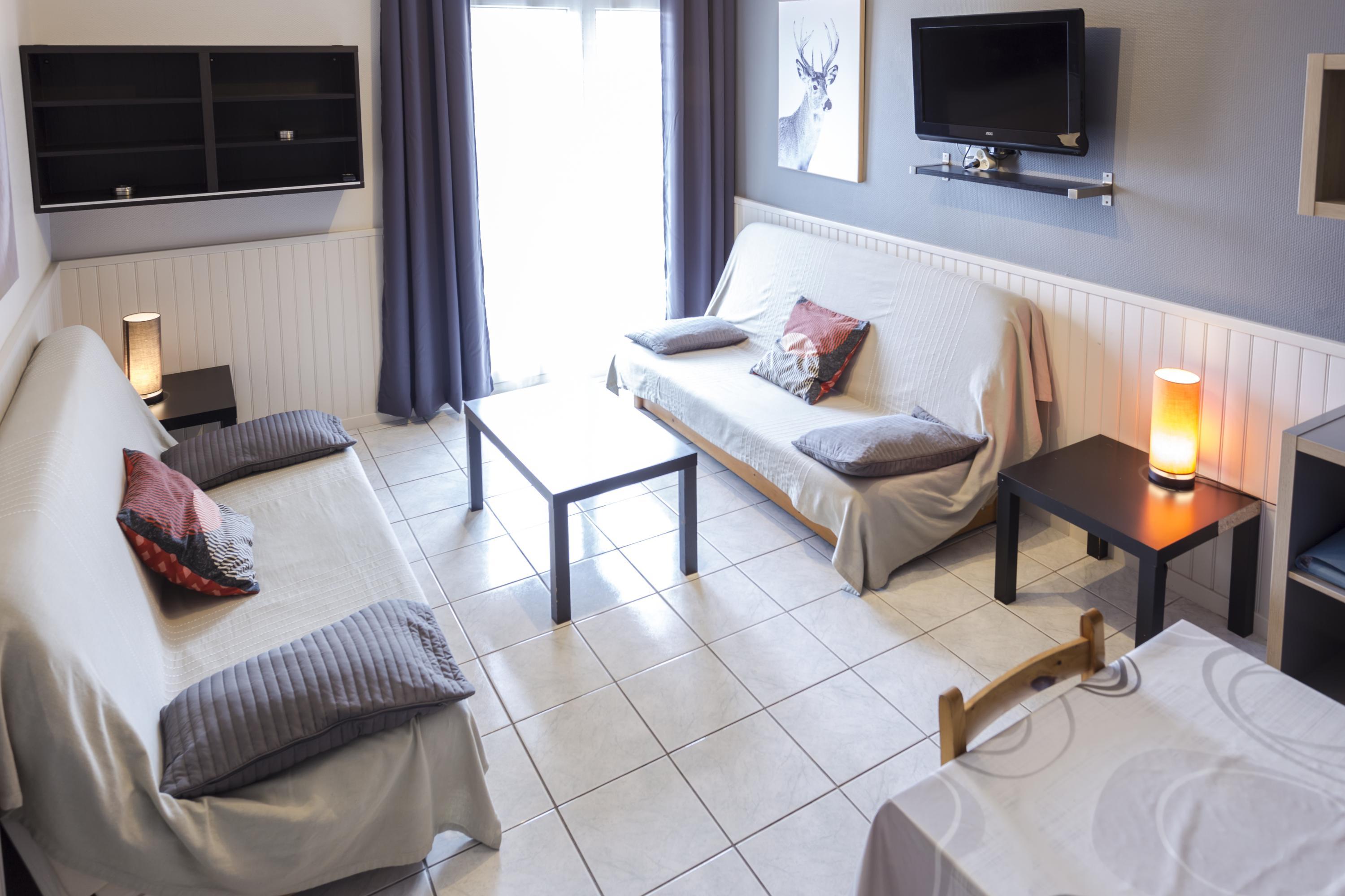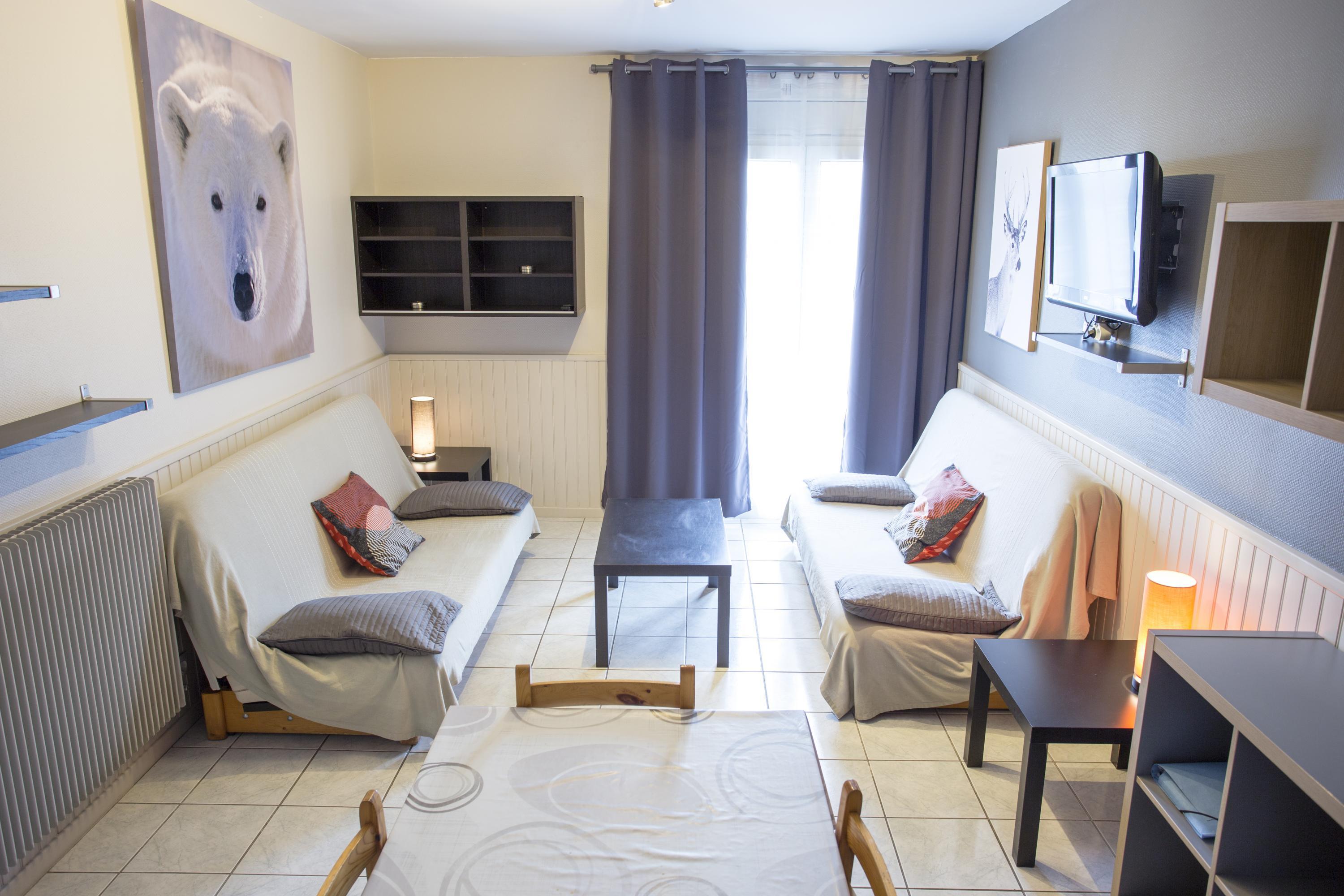 Ubicado en la 3ª planta con ascensor del edificio Chamois, en Pas de la Casa (Andorra), este apartamento luminoso y tranquilo de 64 m² es ideal para 6 personas. El espacio cuenta con una cama doble, literas y un sofá cama.