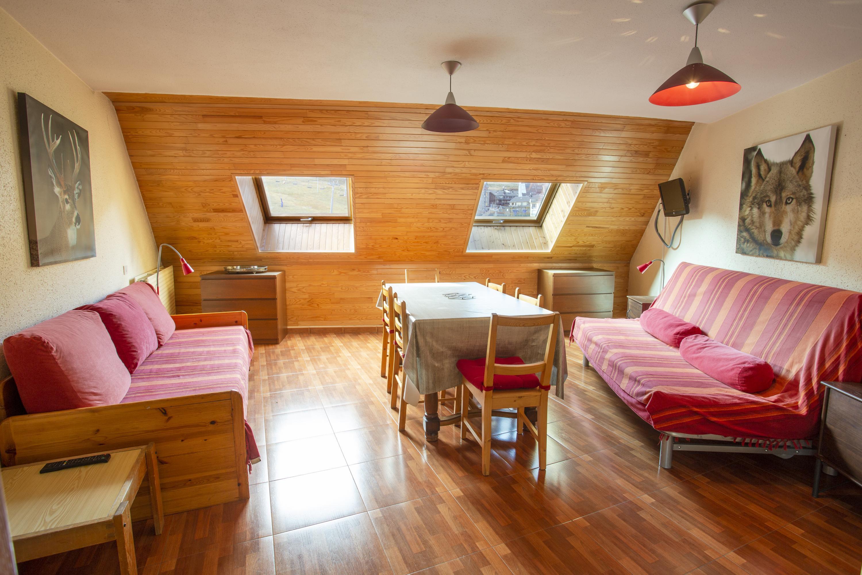 Ubicado en 6ª planta con ascensor de un edificio en Pas de la Casa (Andorra). Se trata de un moderno apartamento de 47 m² para 6 personas. El espacio incluye Cama doble, Sofa-cama y cama individual. El balcón aporta vistas a calle. Incluye cocina básica. El baño cuenta con bañera. En el entorno: Pie de pistas. Una base cómoda para disfrutar de la nieve y del paisaje pirenaico.